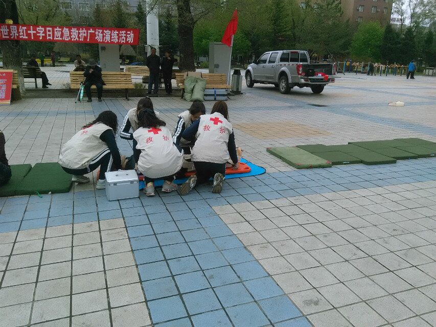 今年5月8日是第69个世界红十字会日。胜利街长城社区在八一广场参加市红十字会举办的应急救护广场演练活动。