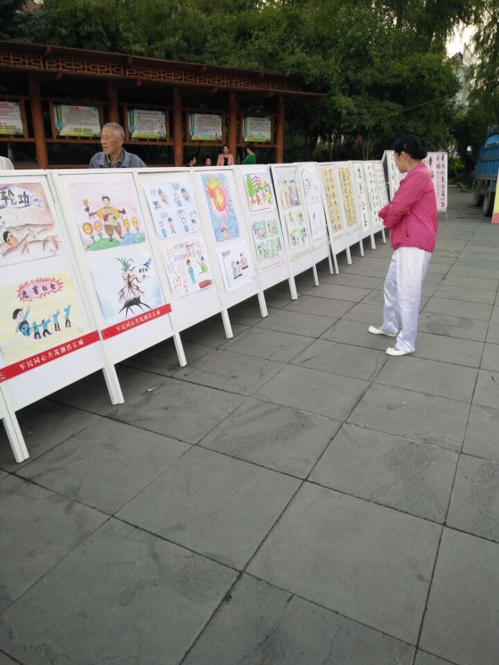 长城社区为了丰富社区居民的精神文化生活,提升社区居民的幸福生活指数,为社区营造欢乐、温馨的气氛。6月27日,社区党支部在体育广场举办了两学一做书画展。