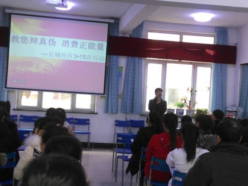 3.13下午,长城社区联合辖区敦化市工商局执法人员共同举办“教你辨真伪 消费正能量”3.15在行动活动,辖区近70名居民学习如何识别假冒伪劣商品。活动旨在通过开展“消费安全”方面的消费教育,帮助消费者增长安全消费知识。