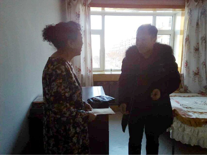 冬日寒风袭面,慰问中一行人来到特殊家庭李国栋家中,与他母亲热心交谈,详细询问他们身体和生活情况。攀谈中母亲许丽华一一介绍了家庭现状。儿子李国栋今年37岁,7年前因股骨头坏死导致肢体残疾,无法正常劳动。4年前又因抑郁导致精神失常,发病时经常向母亲索要钱款挥霍,让这个家庭雪上加霜。慰问领导告诉他们要保重身体,以后遇到困难要及时向街道反映,政府一定会尽最大力量给予帮扶。并且鼓励她调整心态,积极面对困难,使生活早日步入正轨,越过越好。