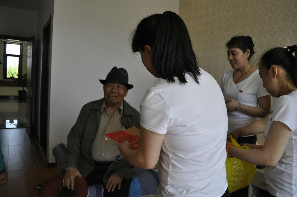 胜利街长城社区党总支自开展 “两学一做”专题学习教育以来,以每周一课形式开展集中教育学习,也开展了为辖区年老党员、重病党员“送学上门”活动。老党员刘松林已经88岁高龄,现在住在光荣院,身体原因不能参加组织活动,但还是时刻关注着国家方针政策,长城社区党支部为他送去了党徽、《党章》和《中国共产党廉洁自律准则》等相关学习资料,还专门为他买了一部收音机,方便他收听国家方针政策和时事新闻,及时将党的声音传递到他心中,时刻与党在一起。