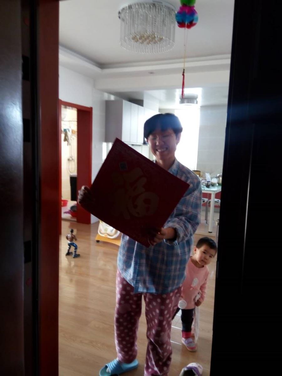 居民受到社区定制的“福”字