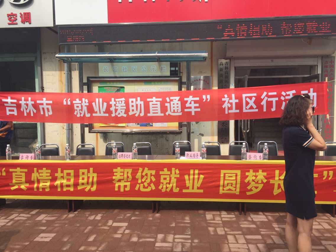 2015年7月23日,日升社区劳动和社会保障站的工作人员与本辖区的求职人员,参加了在长江社区举行的吉林市“就业援助直通车”社区行活动。
