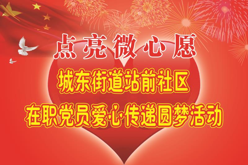为培养和践行社会主义核心价值观,不断弘扬奉献、友爱、互助、进步的志愿服务精神,在“六一”儿童节即将来临之际,开发区党工委和城东街道站前社区党总支委员会联合开展了在职党员“点亮微心愿”爱心传递圆梦主题活动。
