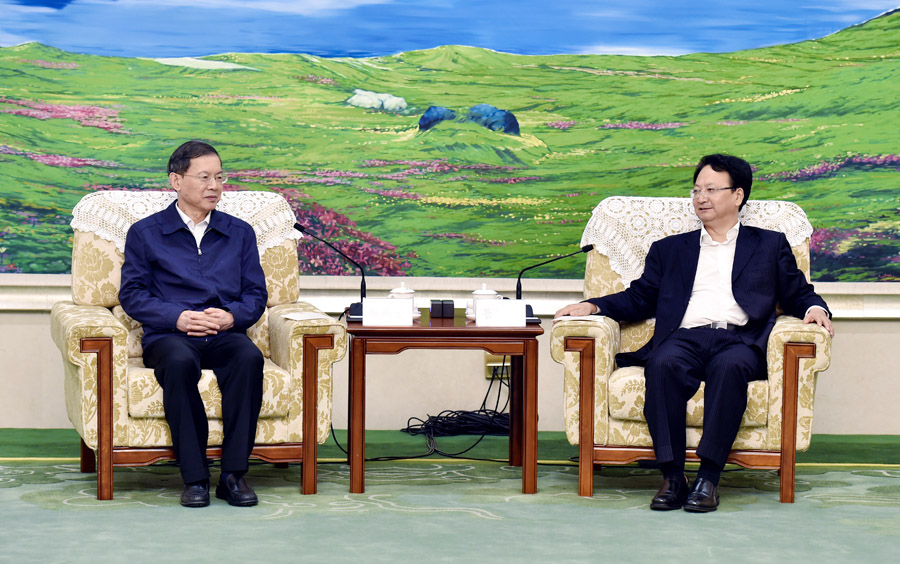 9月19日,全国人大常委会副委员长、民建中央主席郝明金率领民建中央调研组抵达我省,就加强参政党自身建设、提高履职能力等方面开展调研。省委副书记、省长景俊海在长春会见郝明金一行。