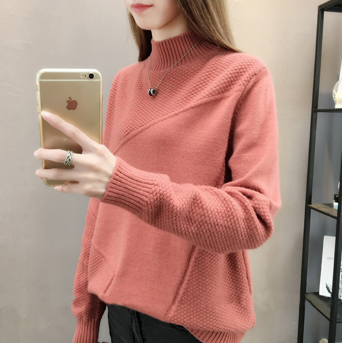 恒源祥针织开衫女2018秋冬季新品时尚韩版半高领宽松长袖毛衣外套纯色简约加厚保暖慵懒风上衣