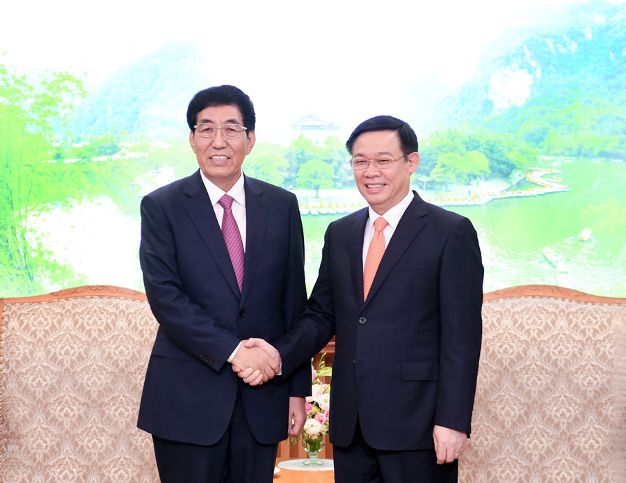 8月2日至4日,省委书记巴音朝鲁率我省代表团对越南进行友好访问。图为巴音朝鲁在河内会见越共中央政治局委员、副总理王庭惠。宋锴 摄