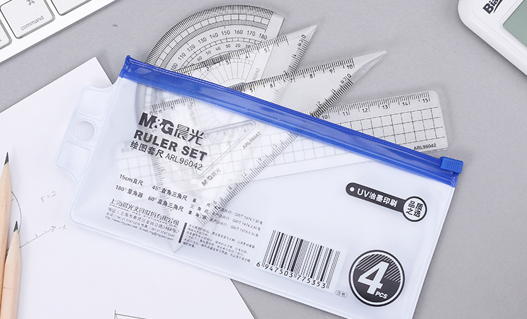 晨光学生直尺三角尺量角器绘图组合套尺4件套