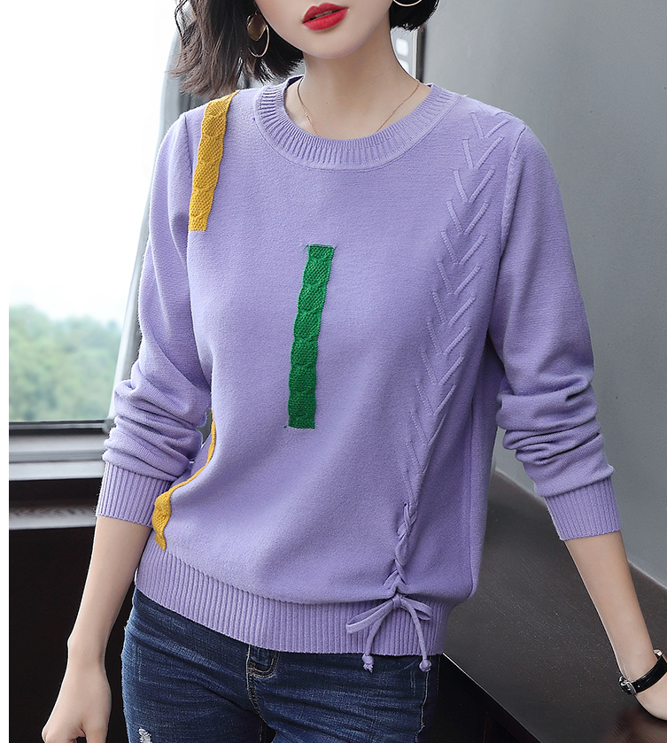 毛衣女士针织衫套头紫色宽松2018新款毛线衣外穿女式秋冬款打底衫